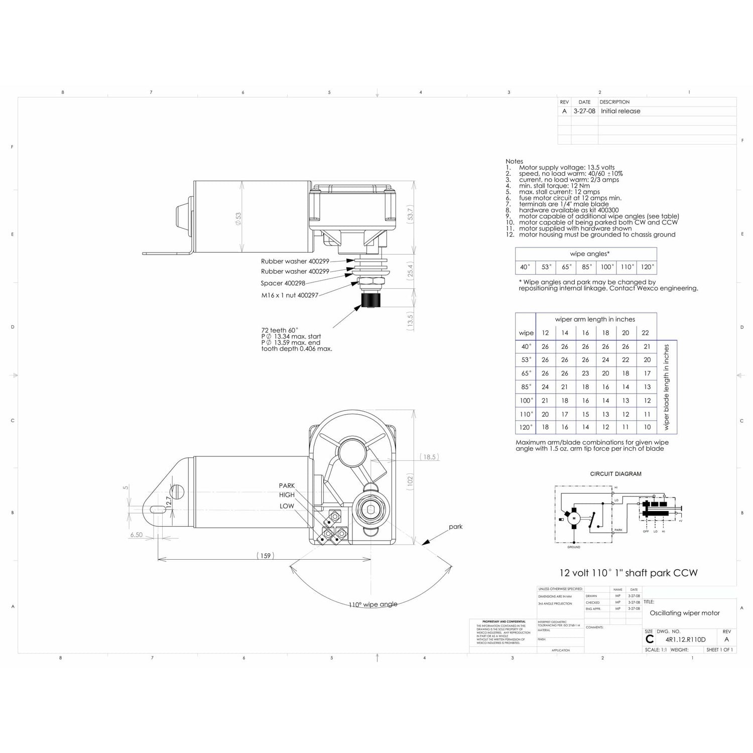The 4R1.12.L85D is a high-performance 12V wiper motor from the 4R-Series (WWF), designed for heavy-duty use in commercial, industrial, marine, and specialty vehicles. Featuring a 1.5" shaft and a left-hand park configuration, this high-torque motor delivers exceptional durability and reliability for demanding applications. Engineered for versatility, it offers adjustable sweep angles and compatibility with a wide range of wiper arm configurations, ensuring precise and consistent wiping performance in any environment. Built to withstand harsh weather and rugged conditions, the 4R1.12.L85D provides unmatched strength and adaptability for optimal visibility.