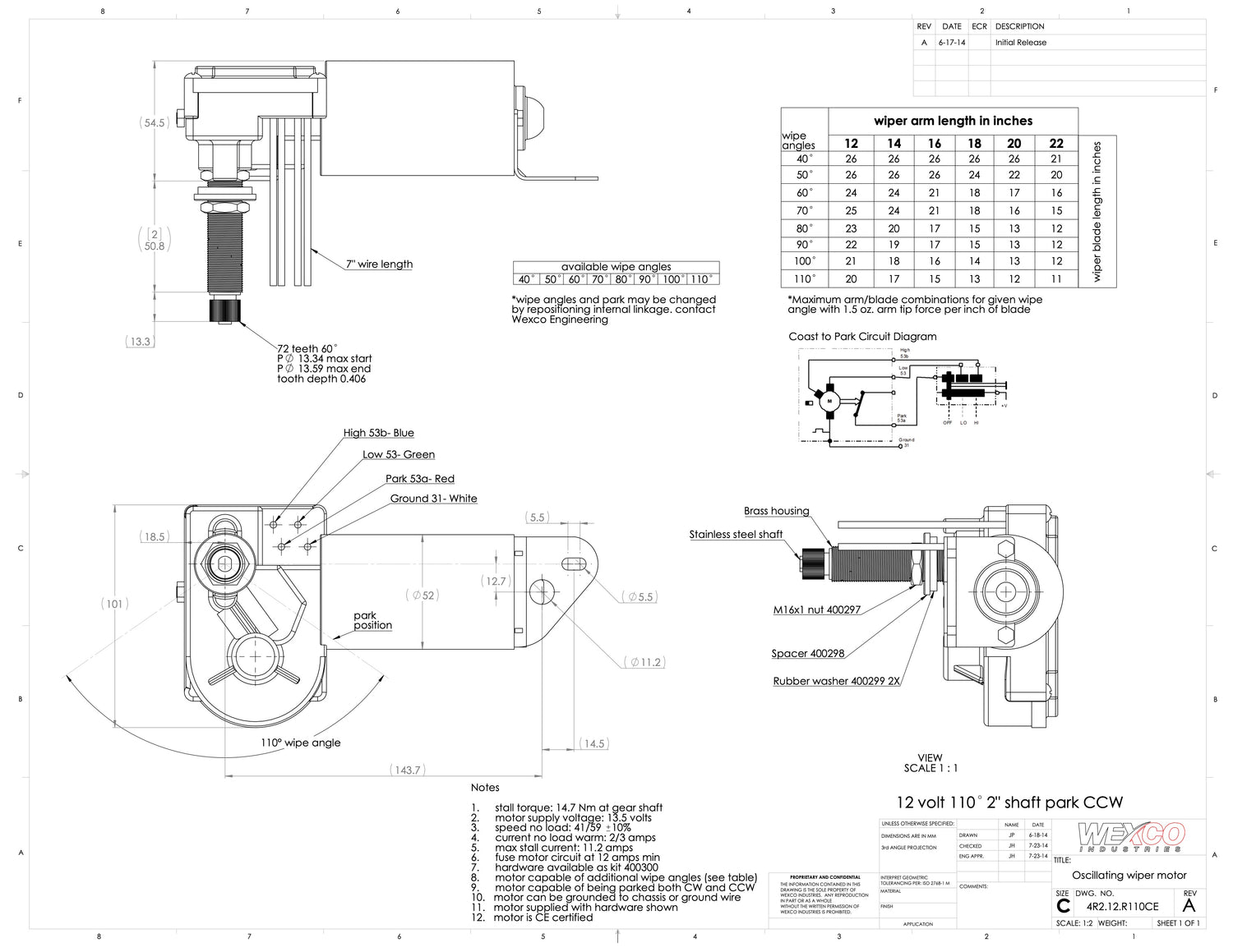 4R2.12.R110CEB (Black) Wiper Motor: Two and a half inch (2.5") shaft, 12V (American Bosch)