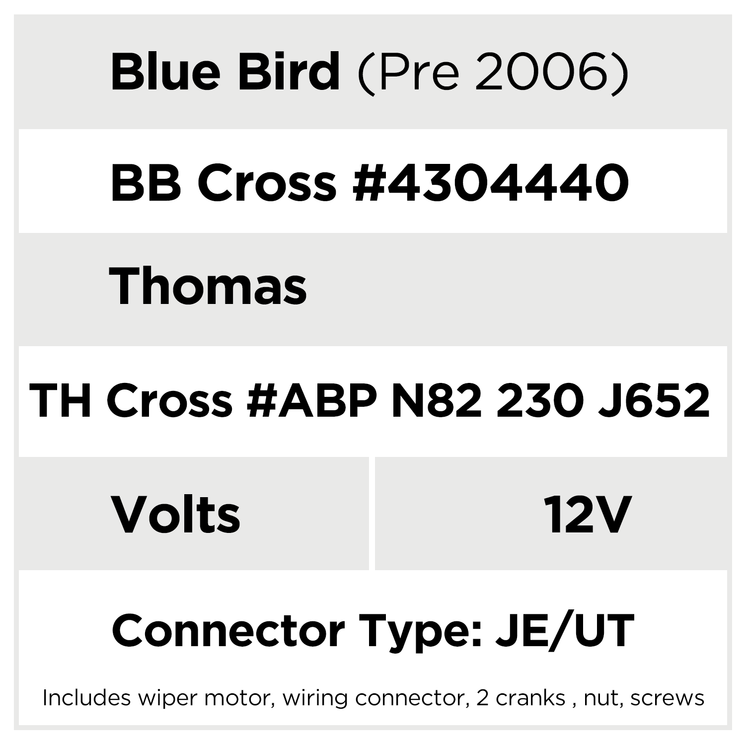 Keep your fleet moving safely with the AX9111 Blue Bird & Thomas Bus Commercial Wiper Motor, a high-performance 12-volt OEM wiper motor engineered for reliability in demanding conditions. Specifically designed for Blue Bird and Thomas Bus models, this heavy-duty motor ensures clear visibility for school buses, commercial coaches, and other large vehicles, even in harsh weather like rain, snow, or debris.