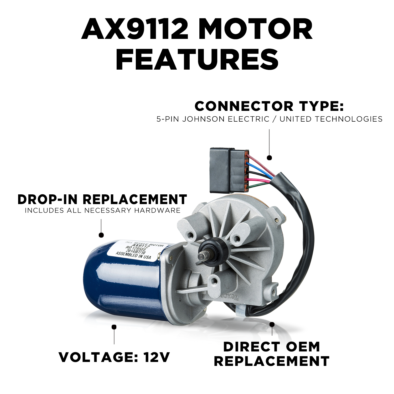 The AX9112 combines robust construction with efficient, high-torque performance to deliver consistent wiping action. Its compact, linkage-free design simplifies installation, reducing maintenance time and ensuring your buses stay on schedule. Built to meet the rigorous demands of fleet operations, this motor is a trusted choice