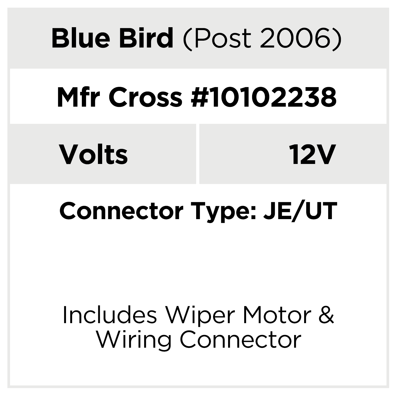 Includes: Wiper motor, wiring connector, screws