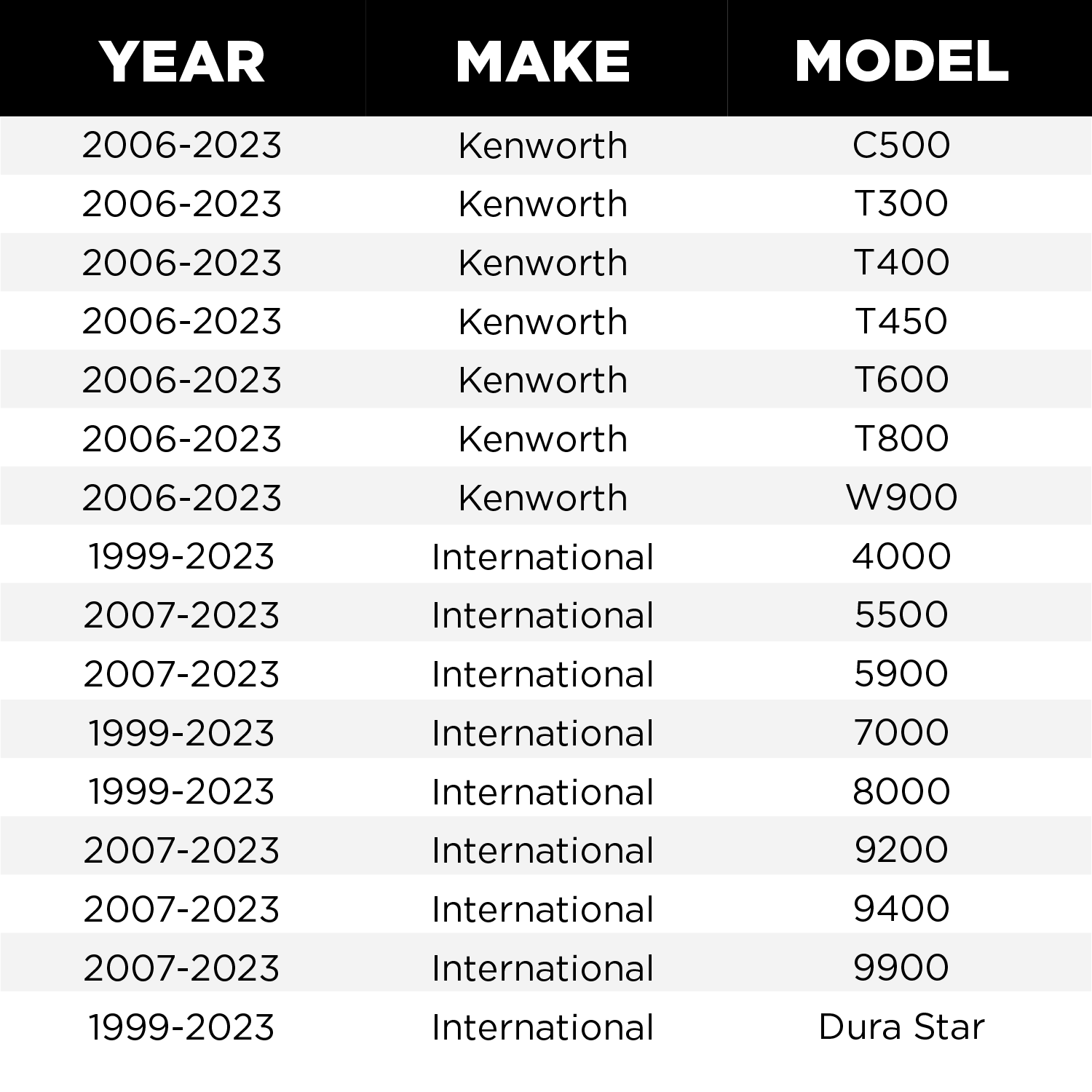 | Make | Model | Year |