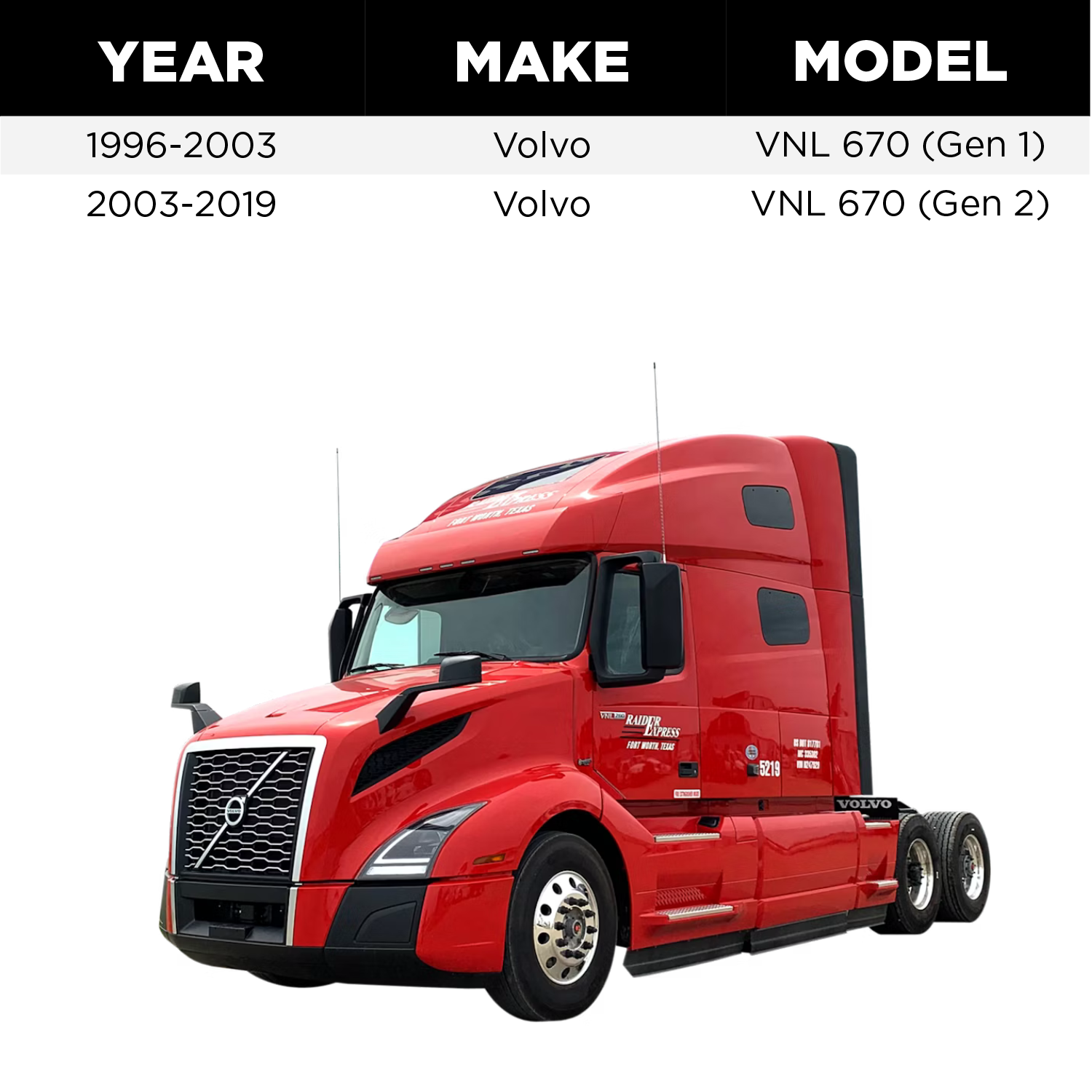 - Fits Volvo VN, VNL