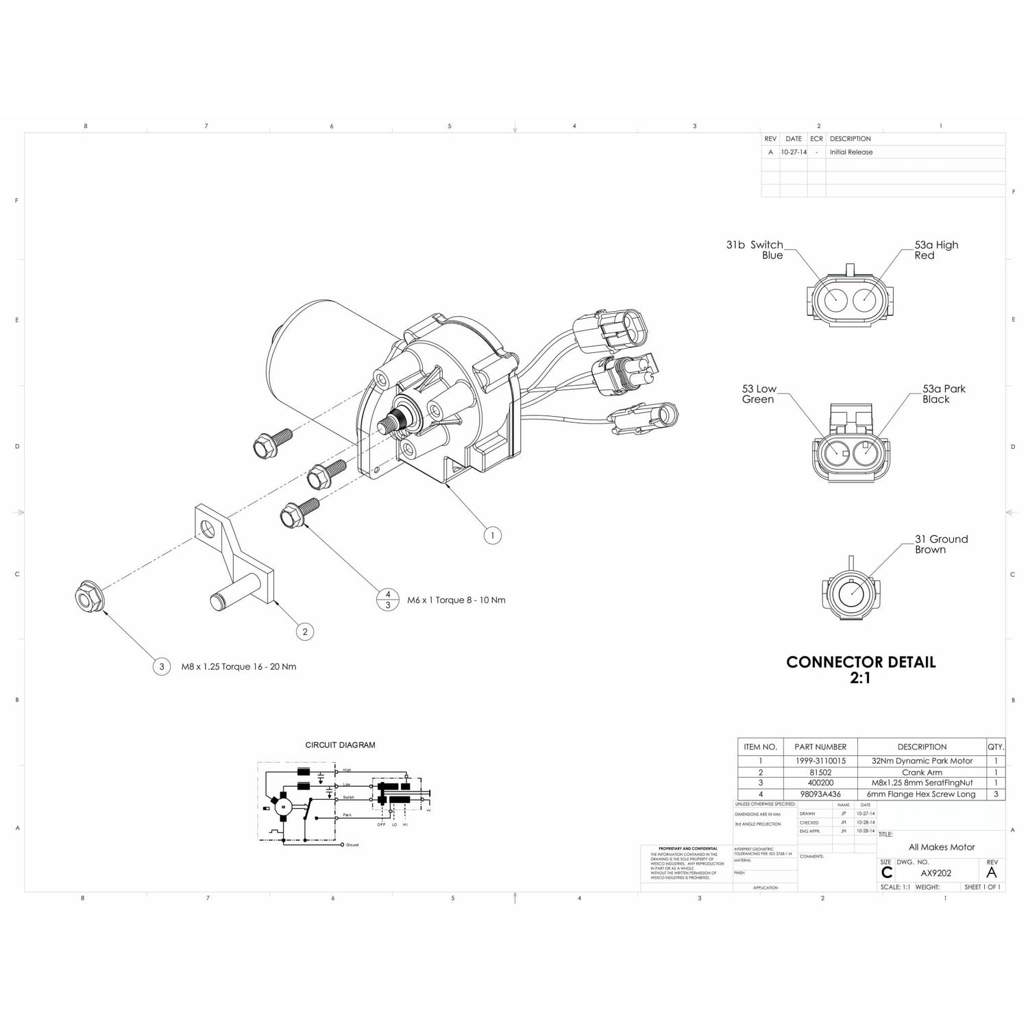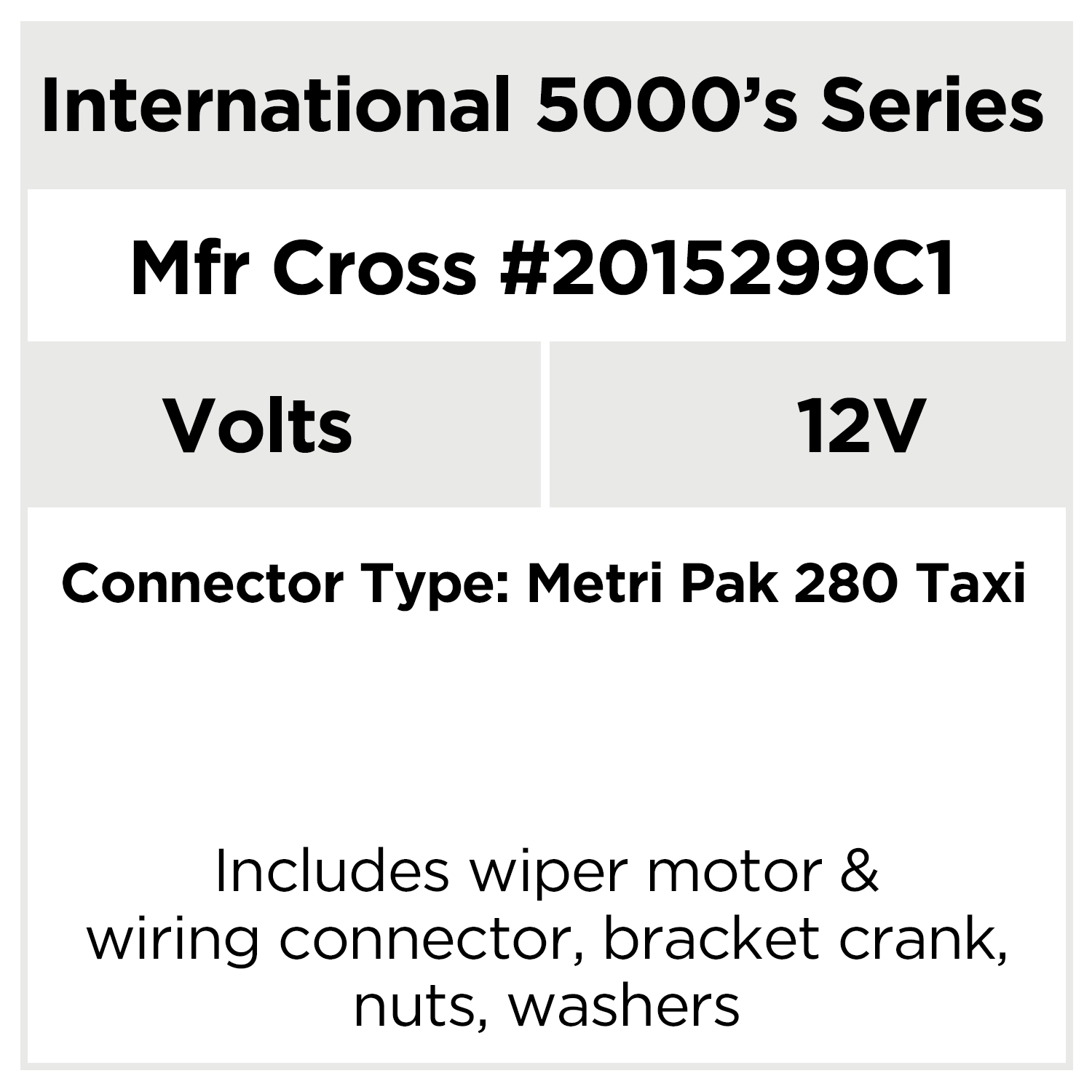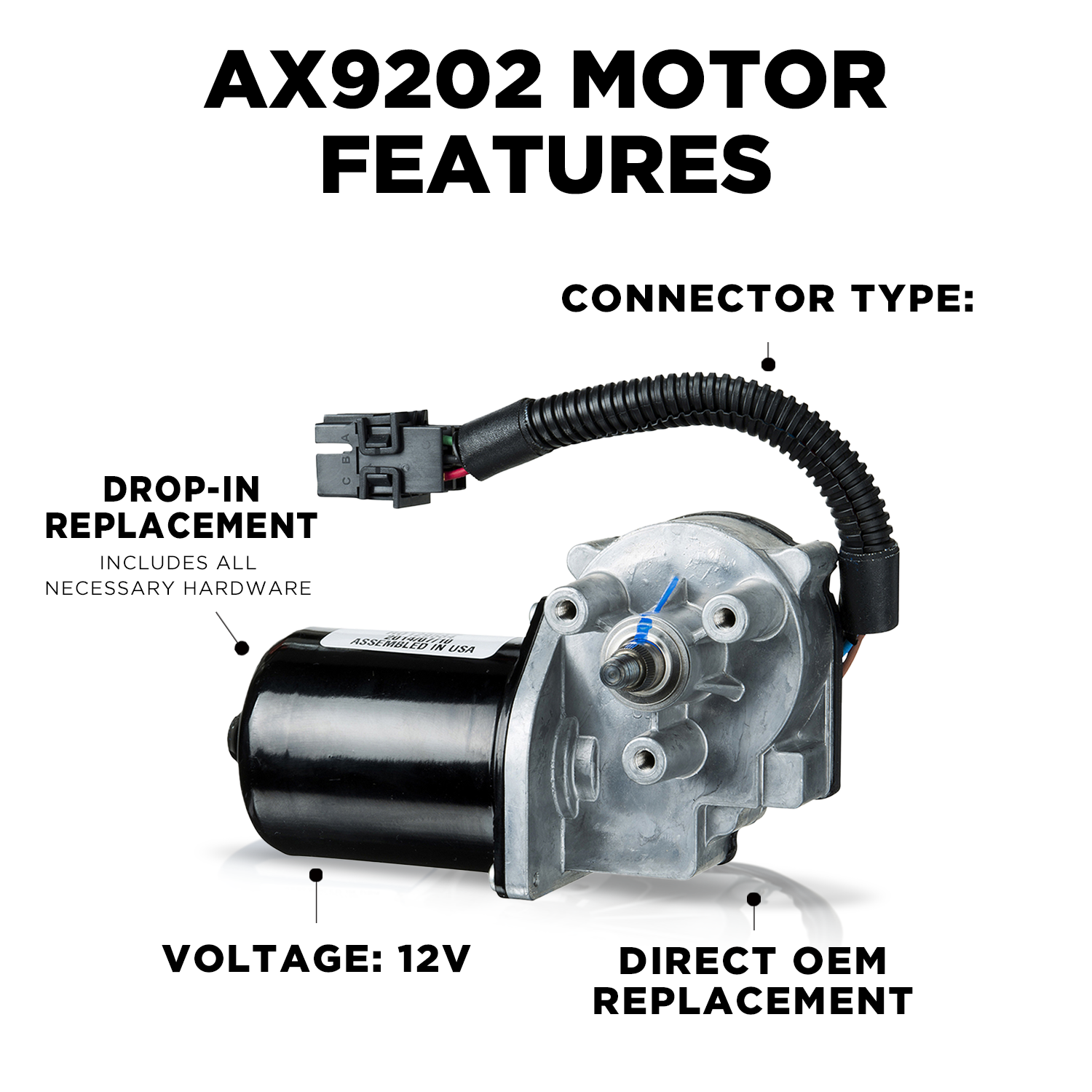 Includes: Wiper motor, wiring connector, screws